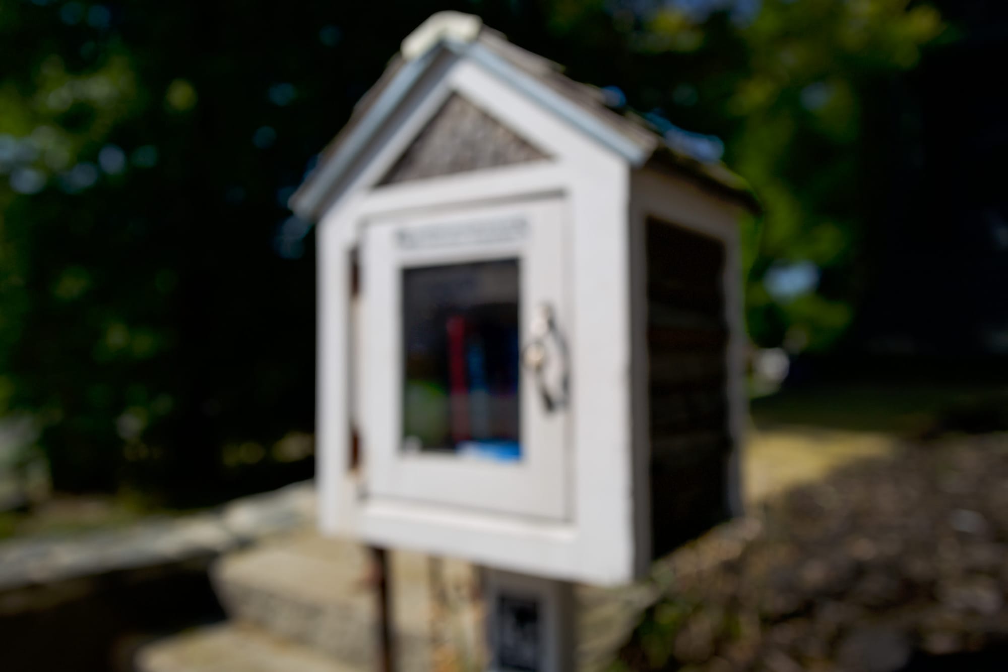 I found myself peeking into driveways, unconsciously collecting small portraits of routine—cars half-parked, hoses coiled, bins out. I might make something of that: “Driveway Peeking.” There are also many free mini libraries. Perhaps another collection idea. The only one I captured was blurry. Why not show some of the misses? Though there is something I like in the unintentionally blurry picture.